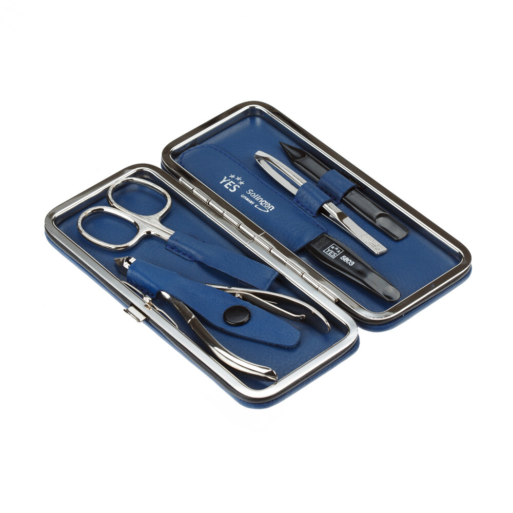 Купить Маникюрный набор YES, 5 пр. Футляр: натуральная кожа, цвет синий YES MR-9074