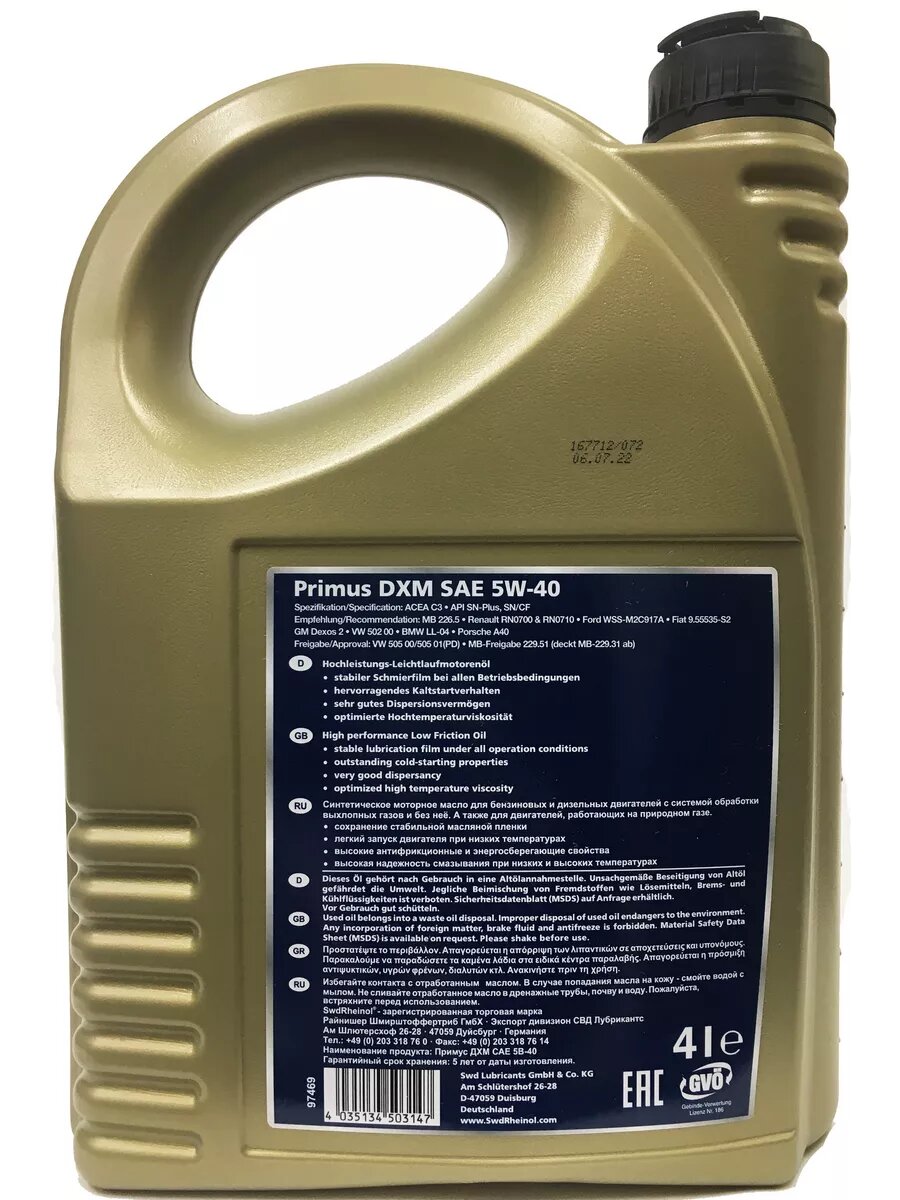 SWD RHEINOL 5W-40 PRIMUS DXM DIESEL СИН. (4Л) SWD Rheinol 31239471