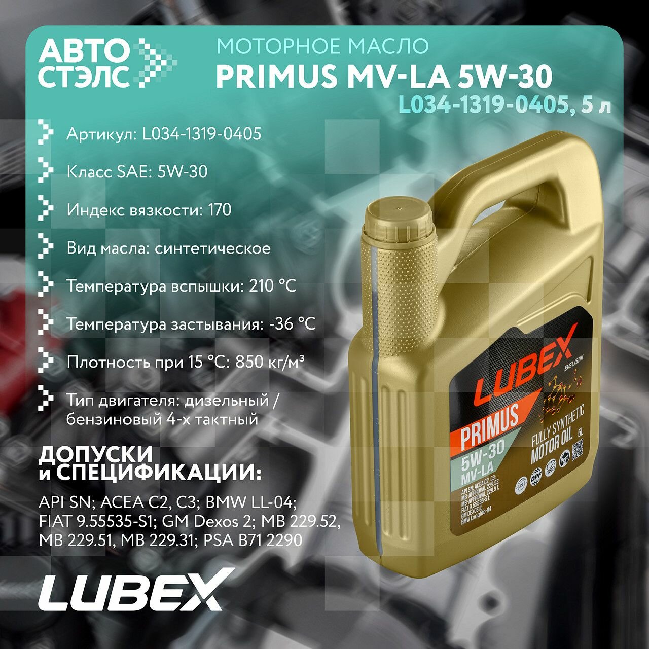 Масло моторное PRIMUS MV-LA 5W-30 5l LUBEX l034-1319-0405 1шт