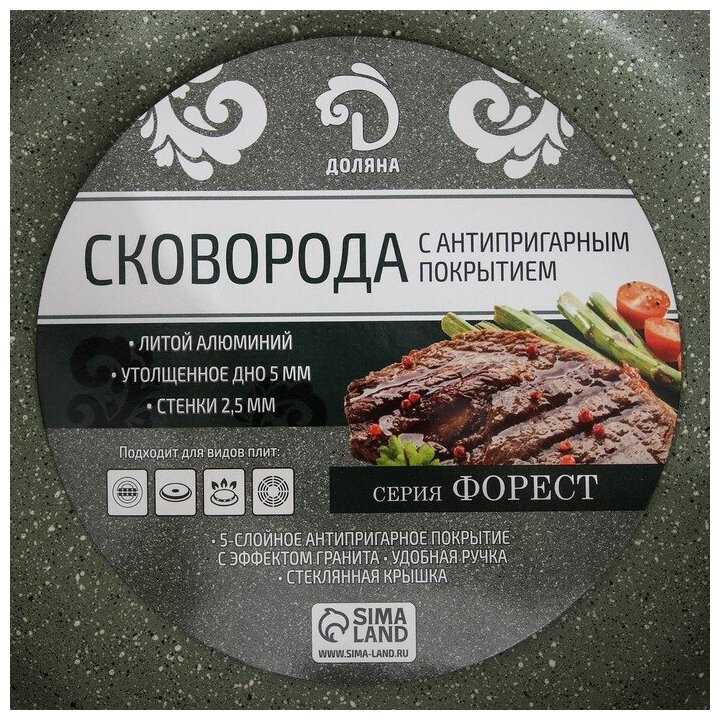Купить Доляна Сковорода Доляна «Форест», d=22 см, стеклянная крышка, съёмная ручка, антипригарное покрытие, цвет зелёный