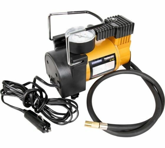 Автомобильный компрессор SKYWAY Компрессор автомобильный воздушный пластиковый Торнадо АС-580 30 л/ мин / Насос автомобильный электрический SW, S02001022 золотистый / черный