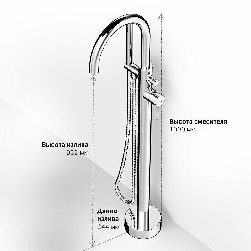 F7514100 Sense, смеситель д/ванны/душа, отдельностоящий, хром, шт.