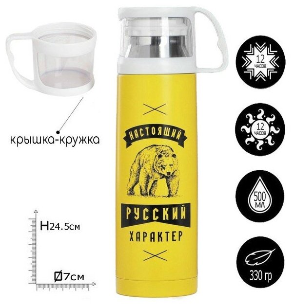 Термос с кружкой «Русский характер», 500 мл, сохраняет тепло 12 ч