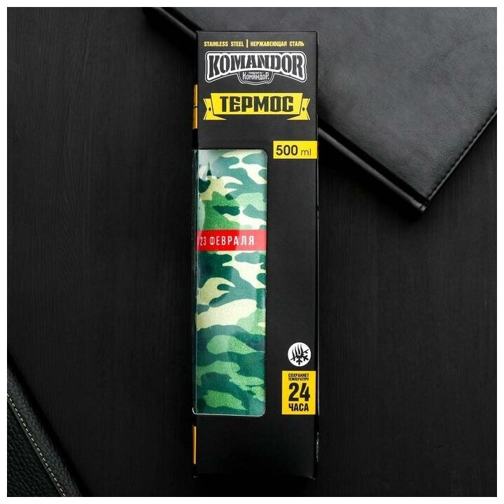 Термос"С 23 февраля", 500 мл, сохраняет тепло 24 ч Командор 5019137 . интересное: