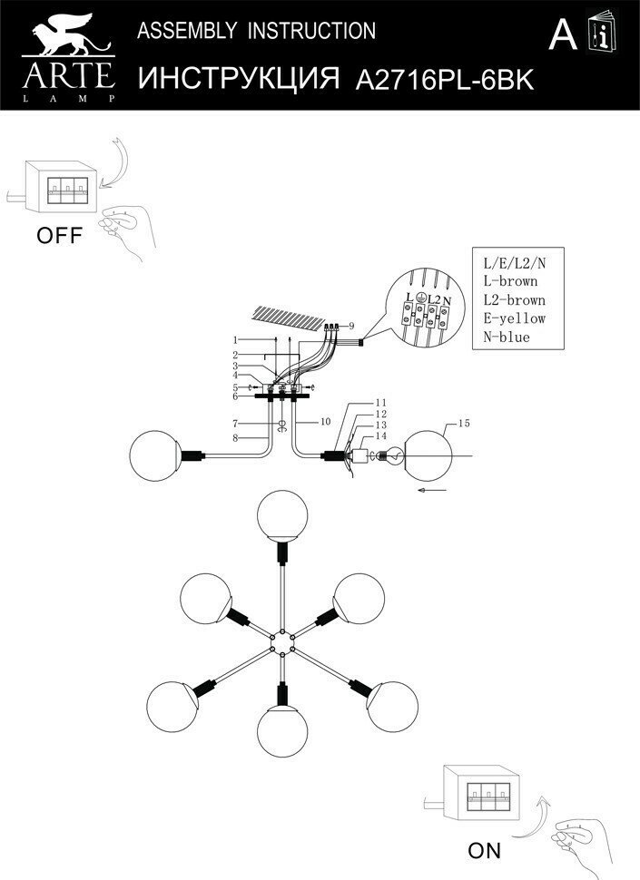 ARTE Lamp #ARTE LAMP A2716PL-6BK светильник потолочный