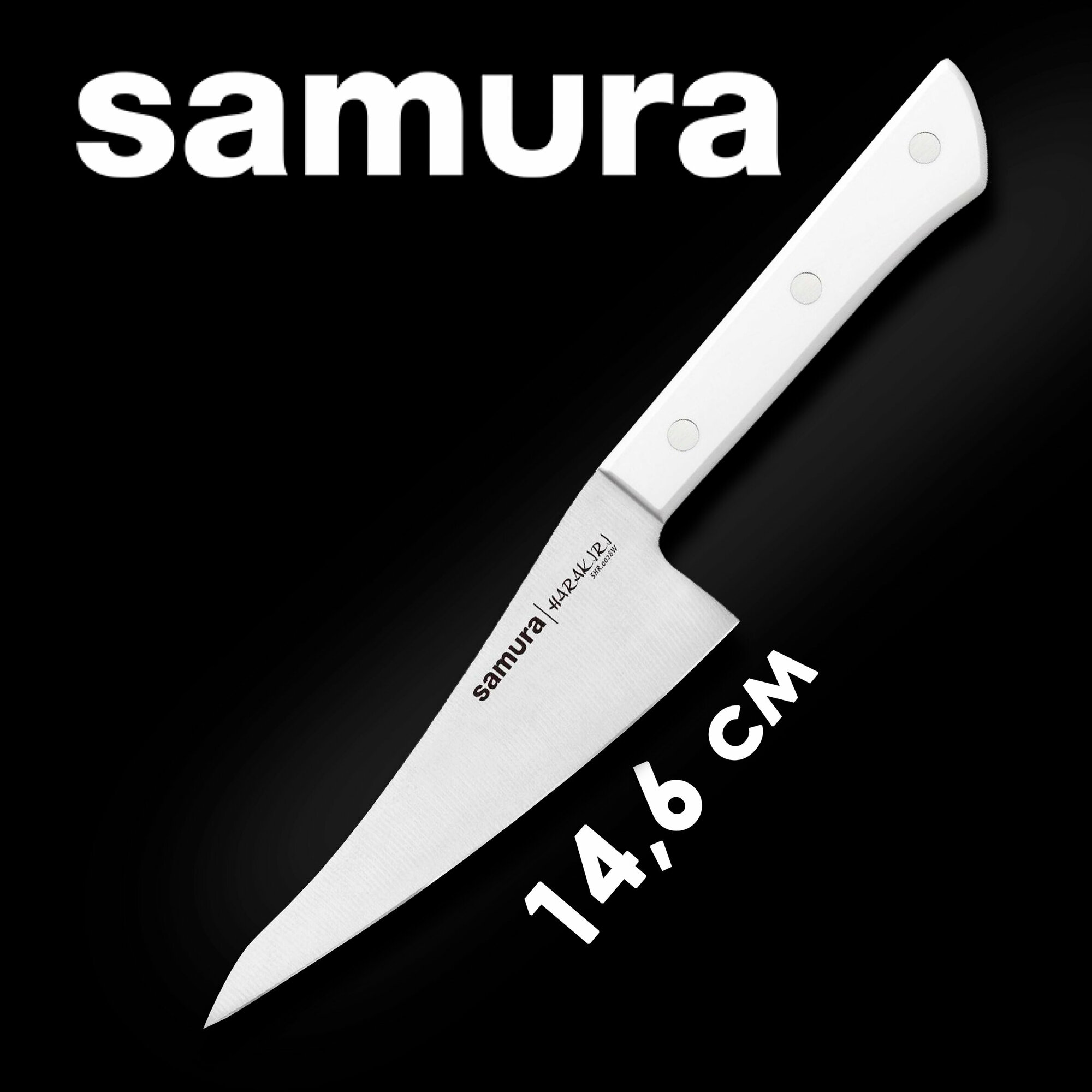 Кухонный нож универсальный для чистки и нарезки овощей, фруктов, колбасы и мяса Samura Harakiri 146мм SHR-0028W интересное: