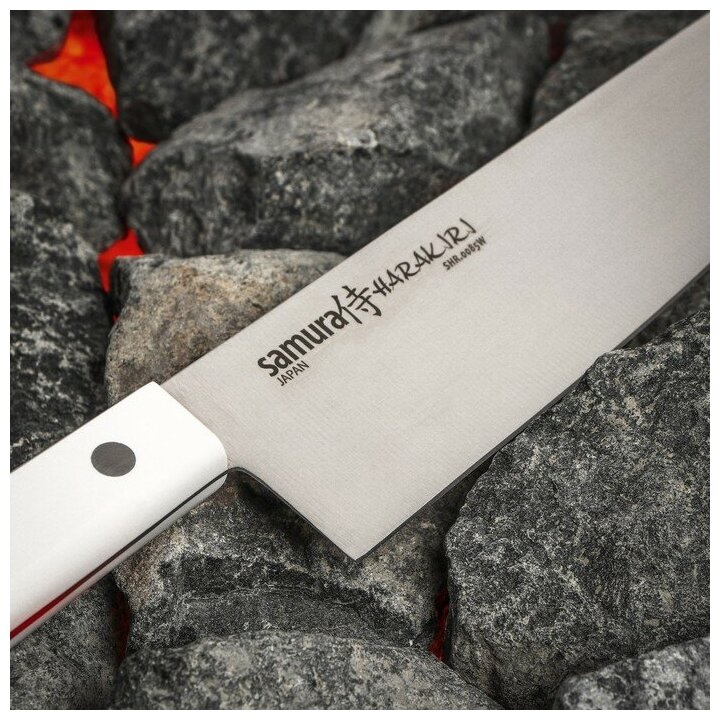 Нож кухонный Samura HARAKIRI, шеф, лезвие 20,8 см, белая рукоять интересное: