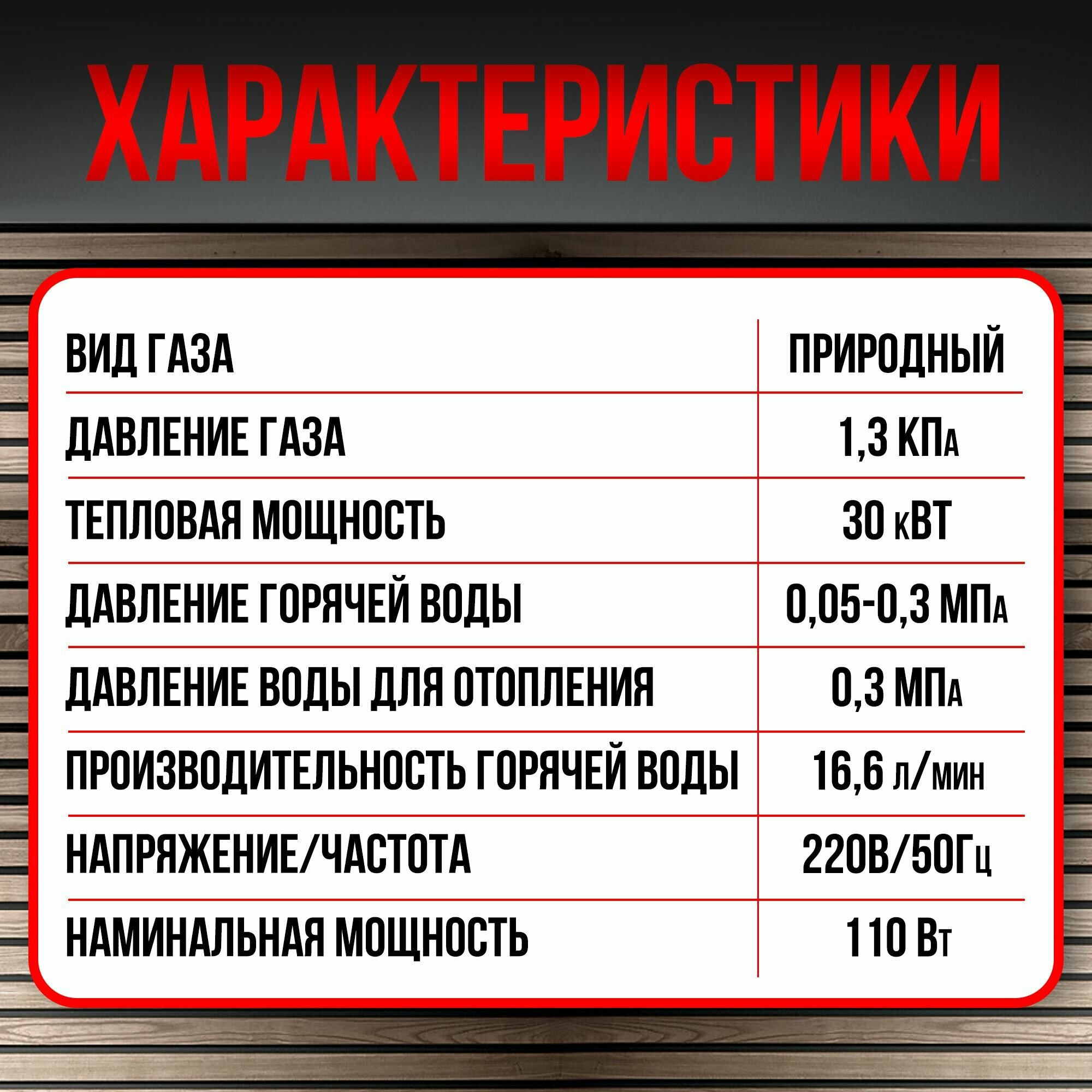 | Номинальное давление природного газа | 6 мБар |