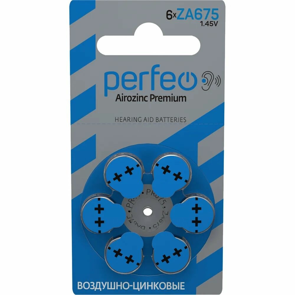 Батарейка для слуховых аппаратов ZA675 Airozinc Premium, упаковка 6 шт, Perfeo
