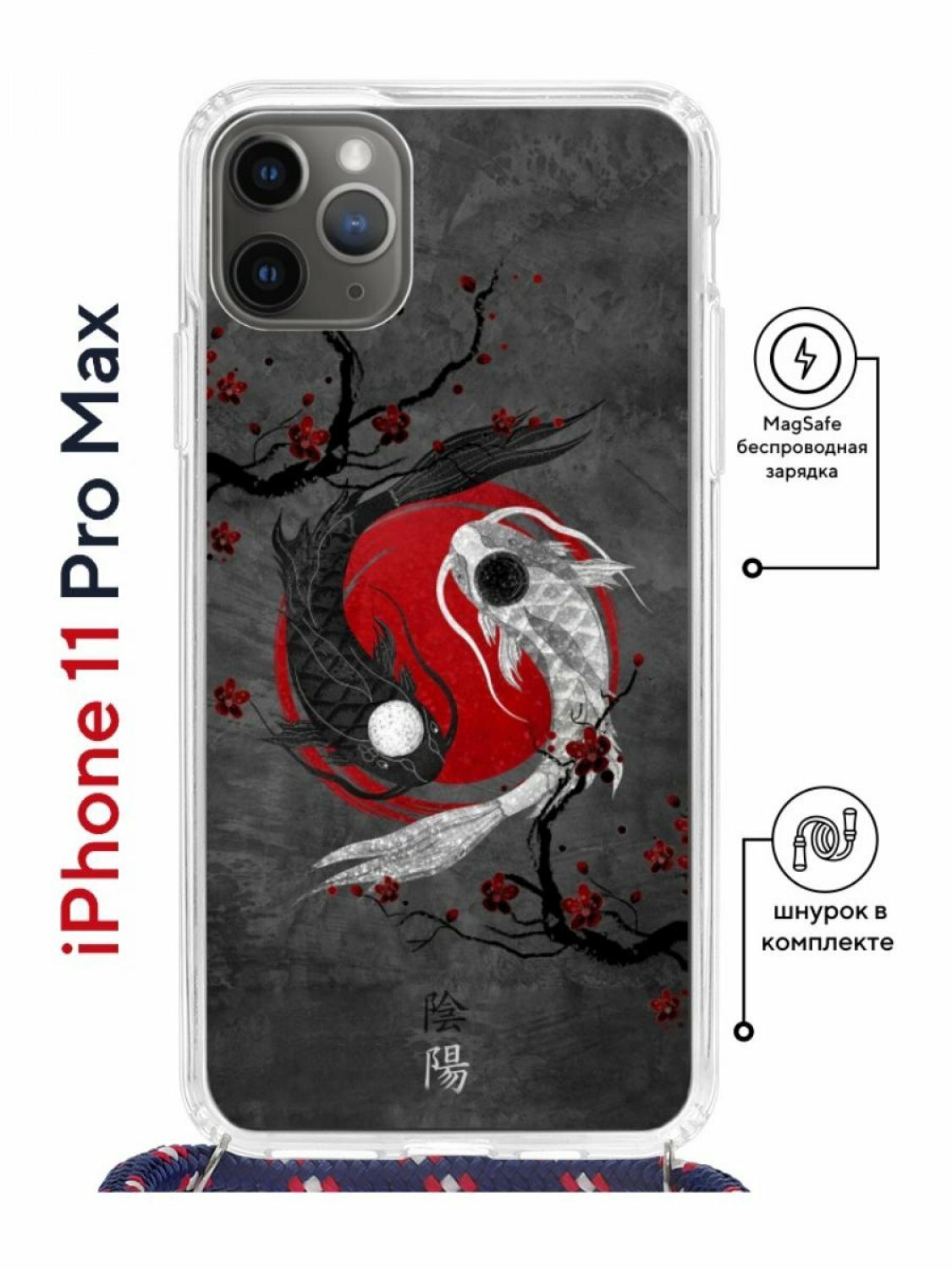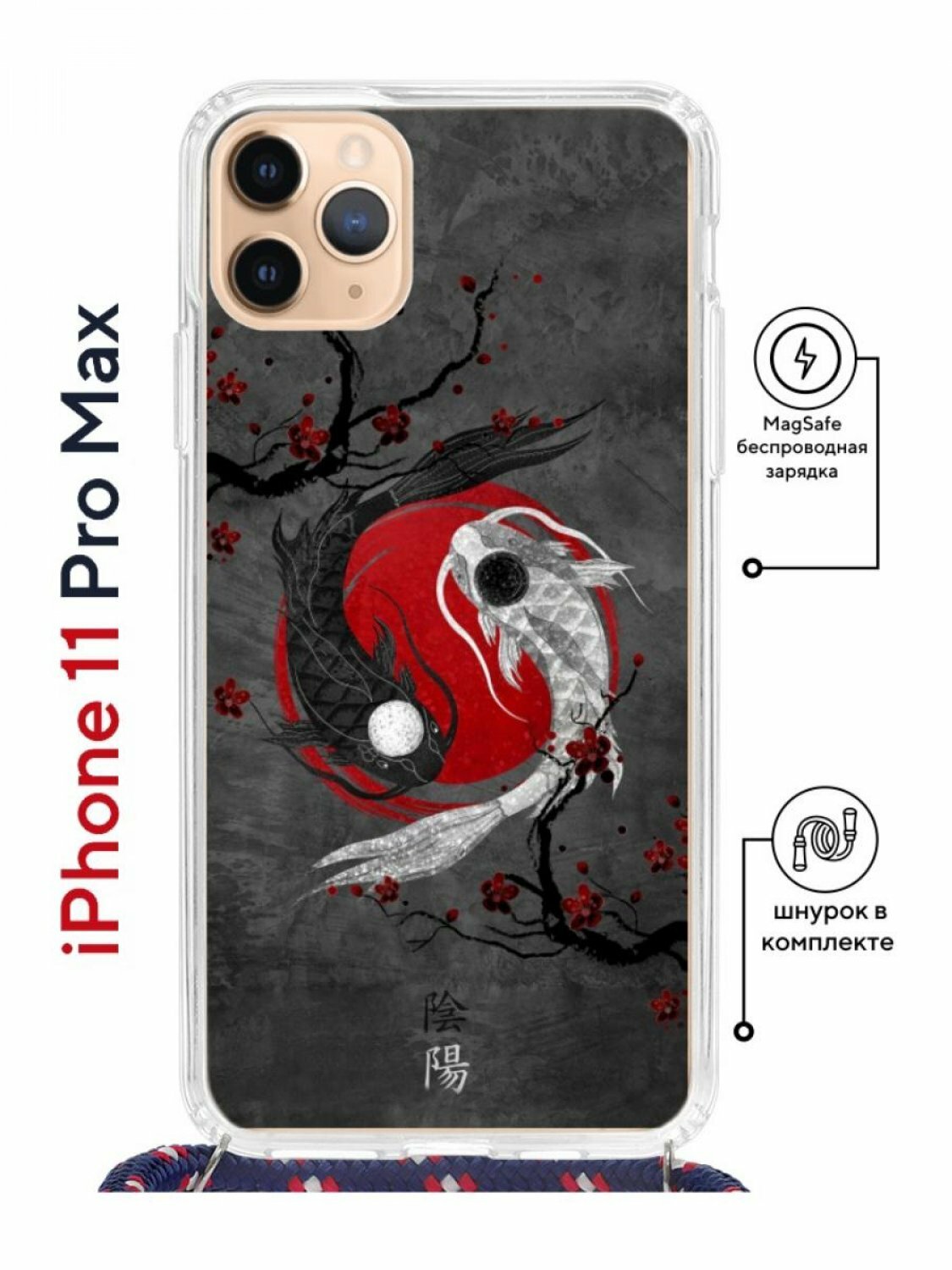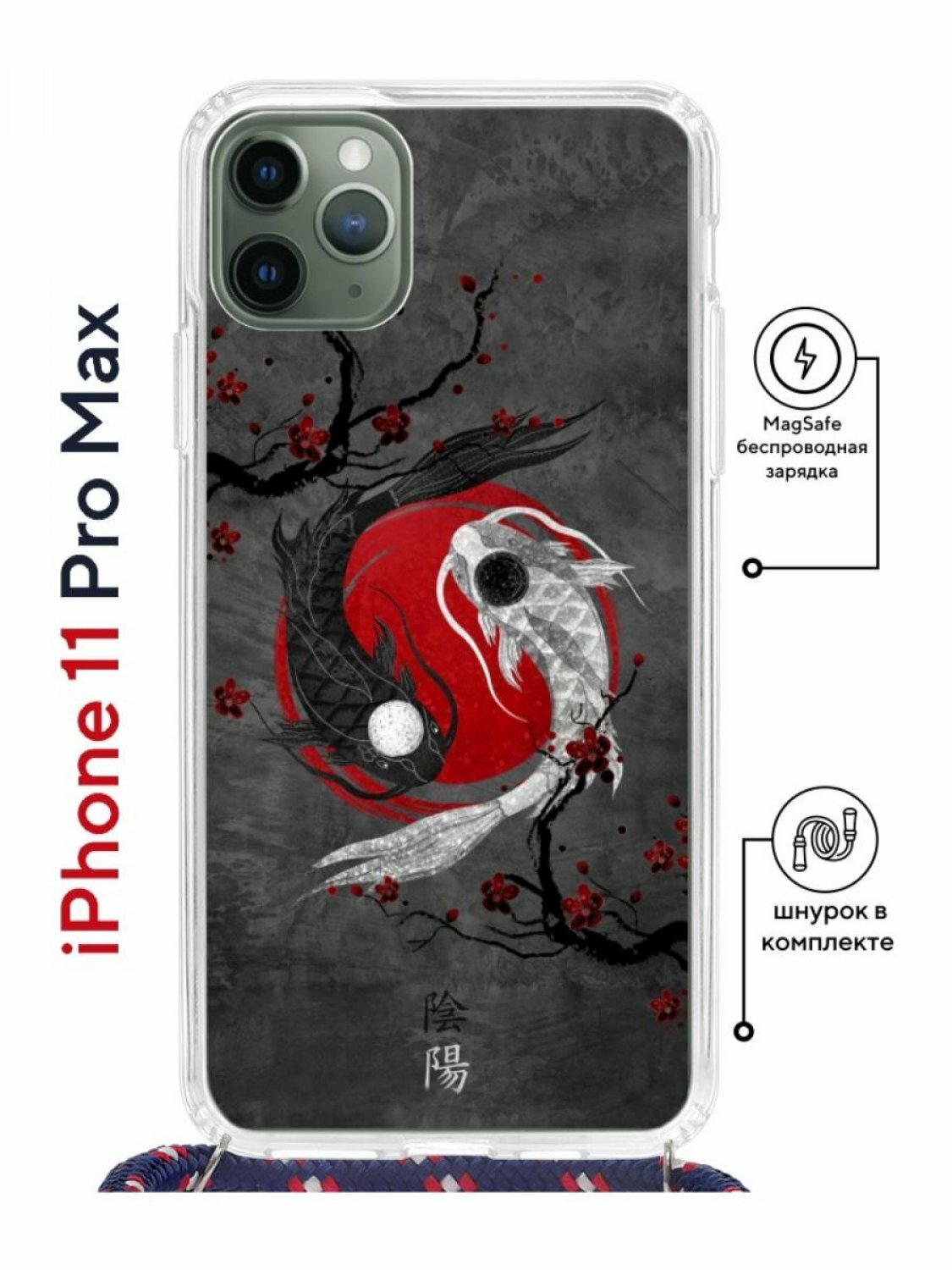 Купить Чехол для Apple iPhone 11 Pro Max Kruche Print MagSafe Magrope Гармония,пластиковая накладка со шнурком и рисунком,противоударный силиконовый бампер