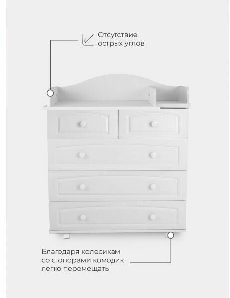 Пеленальный комод Топотушки Ричард 800/5 МДФ слоновая кость