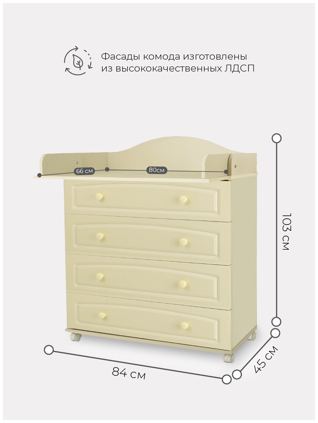 Пеленальный комод Топотушки Ричард 800/4 МДФ слоновая кость