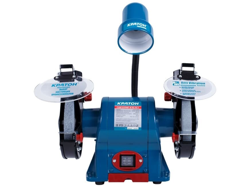 Станок заточной Кратон BG 350/150LP (мощность: 350 Вт, Размеры шлифовального круга 150 32 20 мм, Встроенная лампа для освещения, поддон для охлаждения)