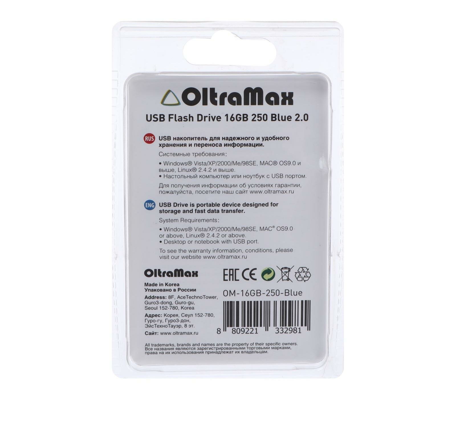 Флэш-накопитель OLTRAMAX OM-32GB-250, USB 2.0, синий