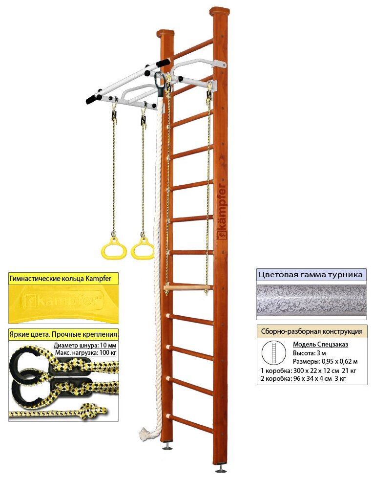 Шведская стенка Kampfer Helena Ceiling №4 Вишневый Высота 3 м белый антик турник интересное: