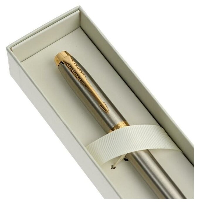 Ручка роллер Parker IM Core Brushed Metal GT T321, серебряный корпус из латуни, матовый лак, чёрные .