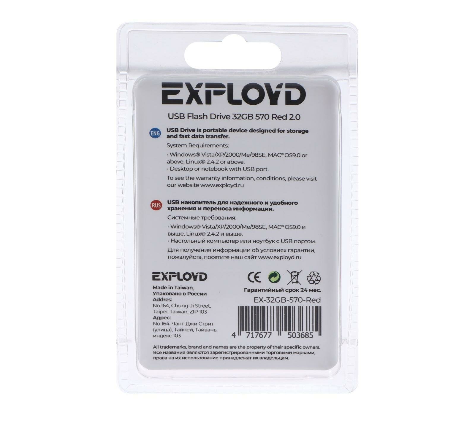 Карта памяти USB 32GB, EX-32GB-570-Red, EXPLOYD