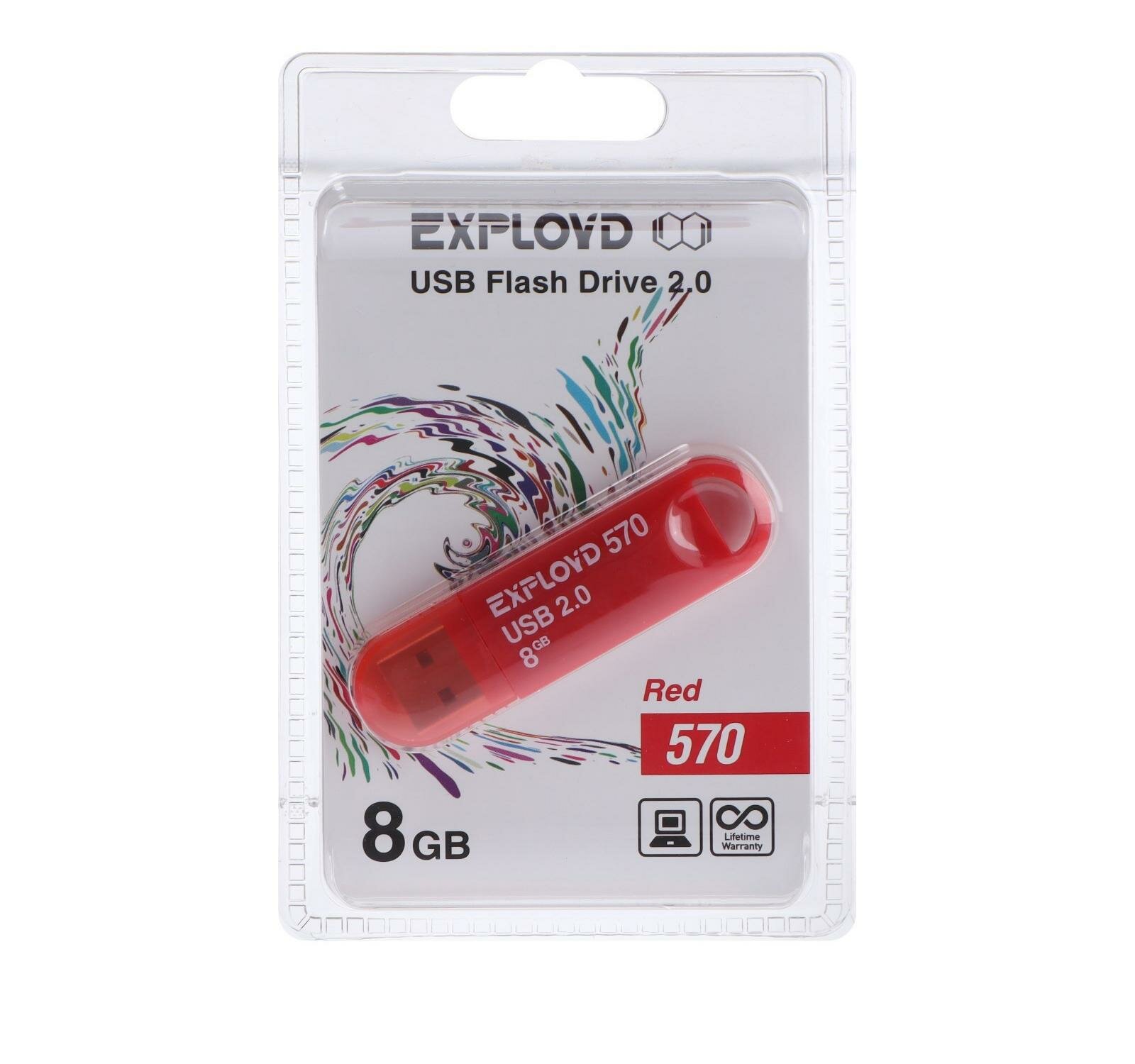 Купить Флешка Exployd 570, 8 Гб, USB2.0, чт до 15 Мб/с, зап до 8 Мб/с, красная