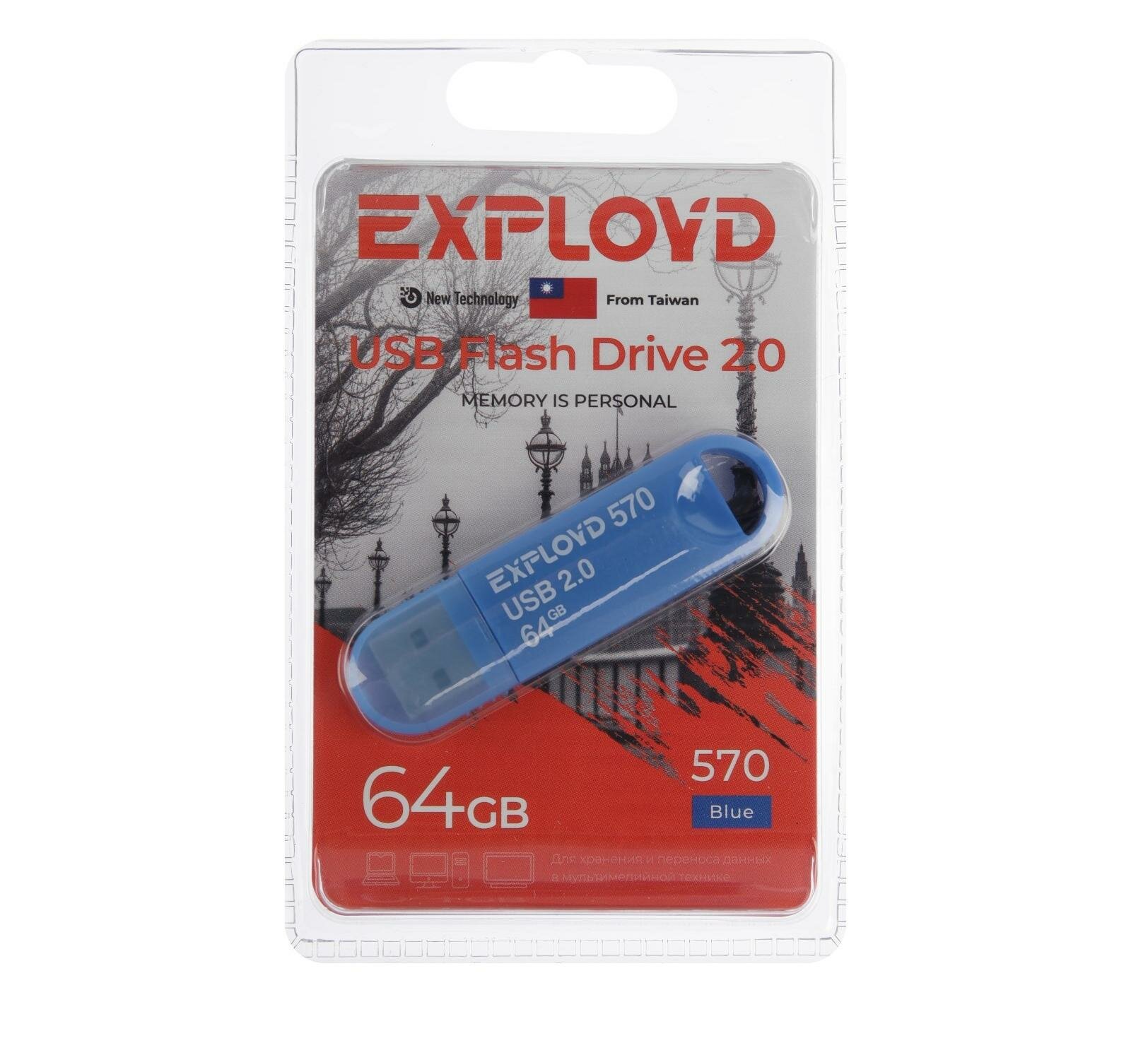 Exployd Флешка Exployd 570, 64 Гб, USB2.0, чт до 15 Мб/с, зап до 8 Мб/с, синяя