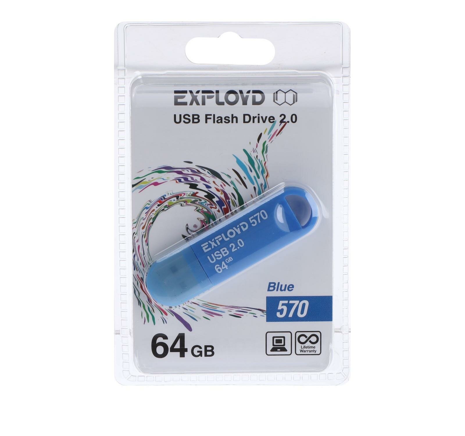 Купить Флешка Exployd 570, 64 Гб, USB2.0, чт до 15 Мб/с, зап до 8 Мб/с, синяя