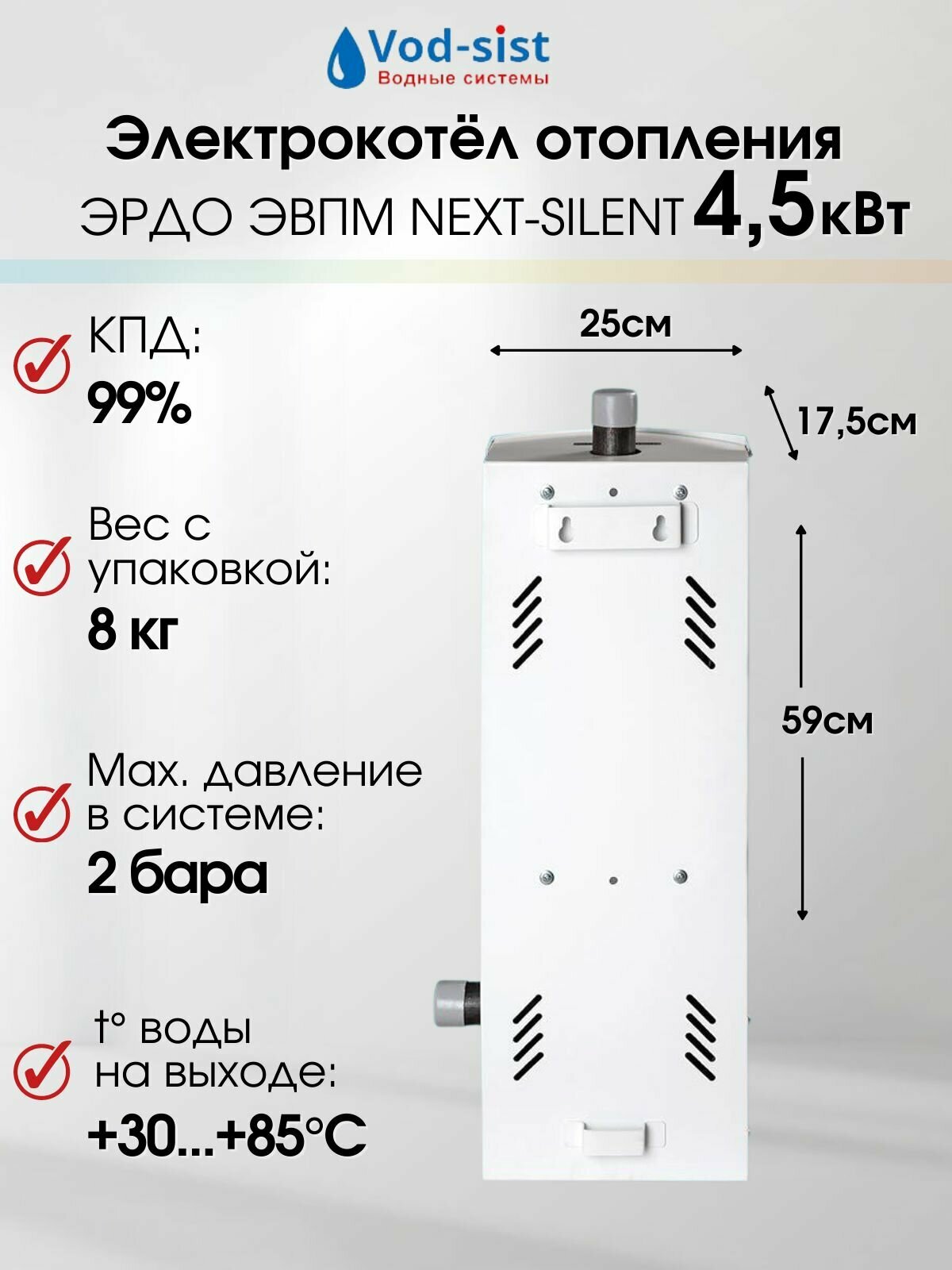 Комплект 4.5 кВт электрокотел эрдо ЭВПМ NEXT-SILENT, насос, бак, группа безопасности интересное:
