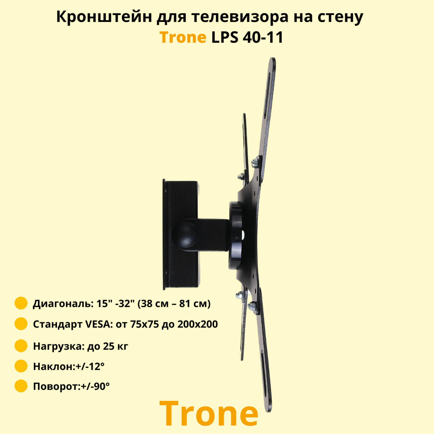 Кронштейн для телевизора на стену наклонно-поворотный с диагональю 15"-32" Trone LPS 40-11,черный