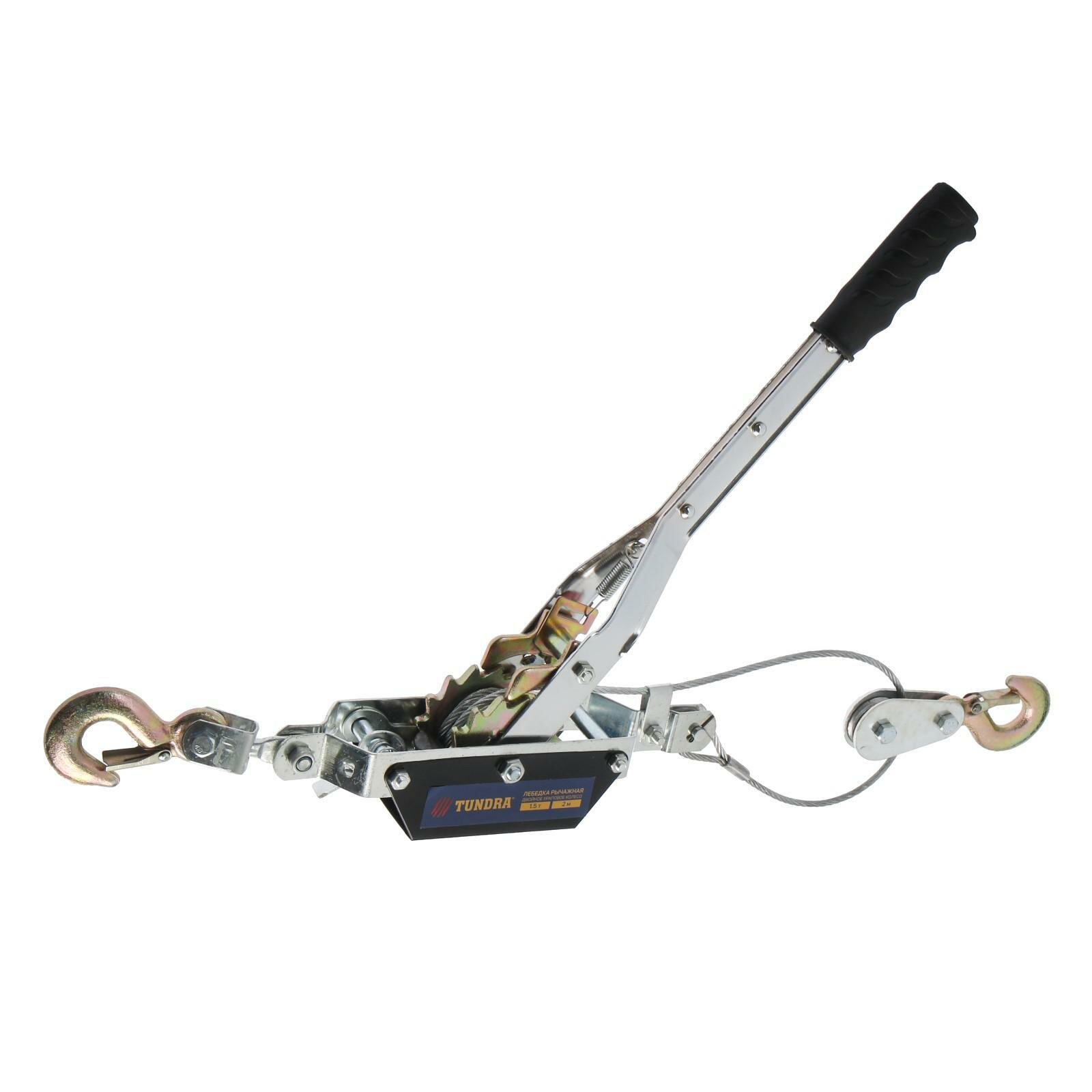 Лебедка рычажная тундра, двойное храповое колесо, тяга 1.5 т (подъем 0.6 т), трос 2 метра (1шт.)