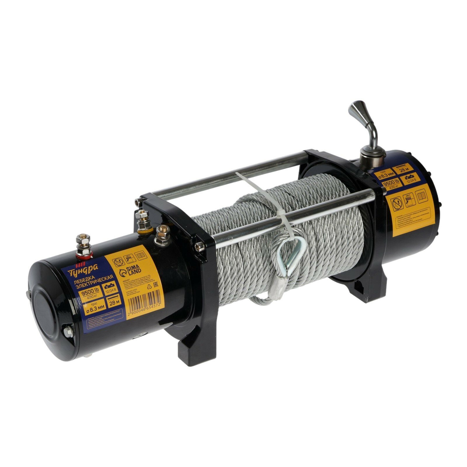 Лебедка электрическая тундра, 12/24V, 9500 lb (4.3 т), 5.5 л.с., до 9.8 м/мин, 8.3 мм х 28 м
