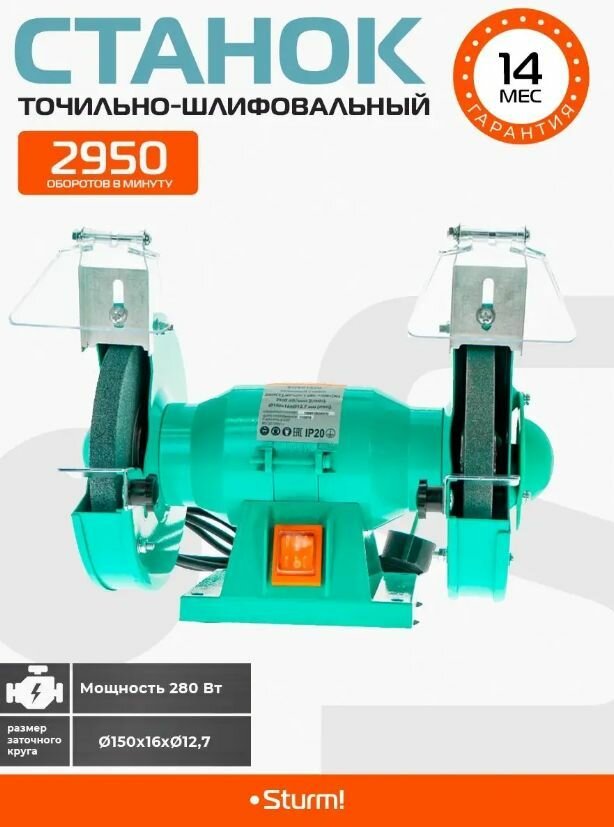 Sturm! Станки BG60152U Точильный станок ,150х16х12,7 мм, 280 Вт, 2950 об мин, адаптирован для ДОП насад BG60152U