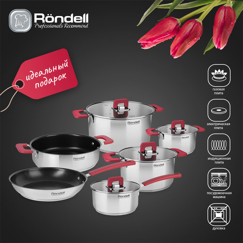 Набор посуды Rondell Savvy 10 пр. серебристый/красный RDS-1189