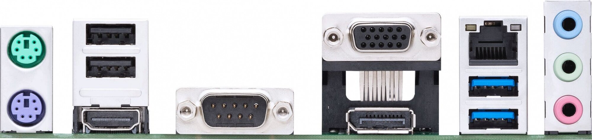 | Разъемы на задней панели | VGA, HDMI, DisplayPort, PS/2 (мышь), COM-порт, LAN RJ-45, PS/2 (клавиатура), USB 2.0 Type-A x 2, USB 3.2 Gen1 Type-A x 2 |