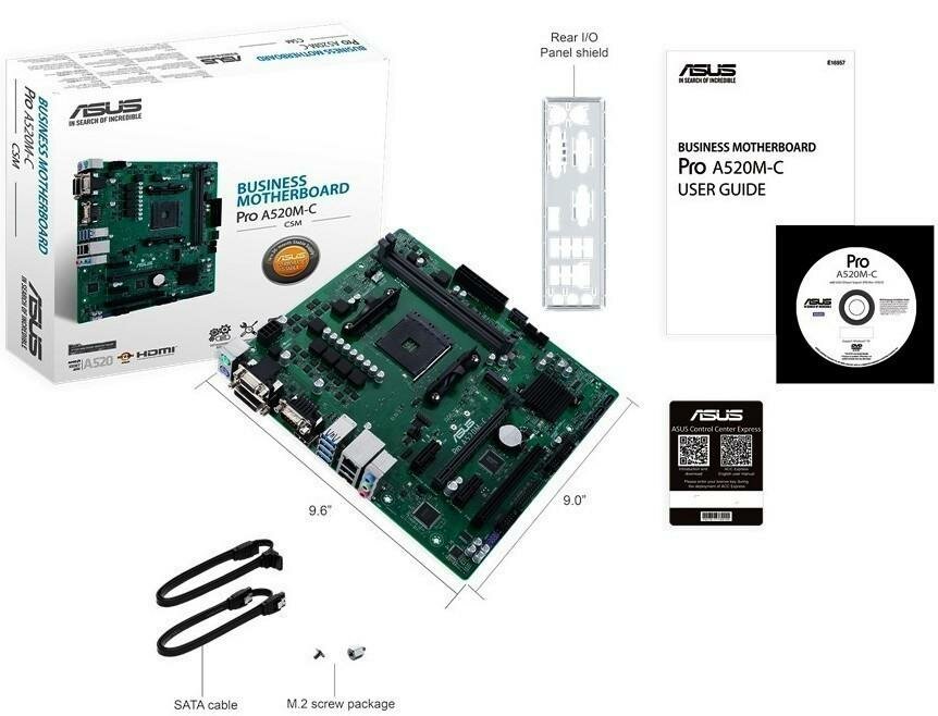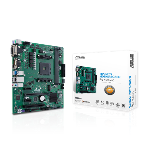 Материнская плата ASUS PRO A520M-C/CSM, Socket AM4, A520, 2*DDR4, D-Sub+HDMI-DVI, SATA3 + RAID, Audio, Gb LAN, USB 3.2*6, USB 2.0*6, COM*1 header (w/o cable), mATX ; 90MB1550-M0EAYC, 3 year