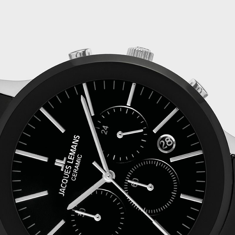 Наручные часы Jacques Lemans 1-1854A, мужские кварцевые керамические часы Жак Леман с хронографом и датой на комбинированном браслете (сталь и керамика)