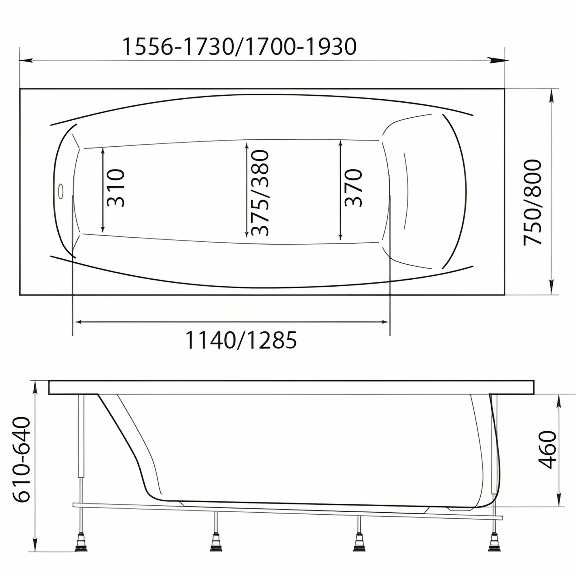 Акриловая ванна Marka One Pragmatika 170-193х80 обрезная