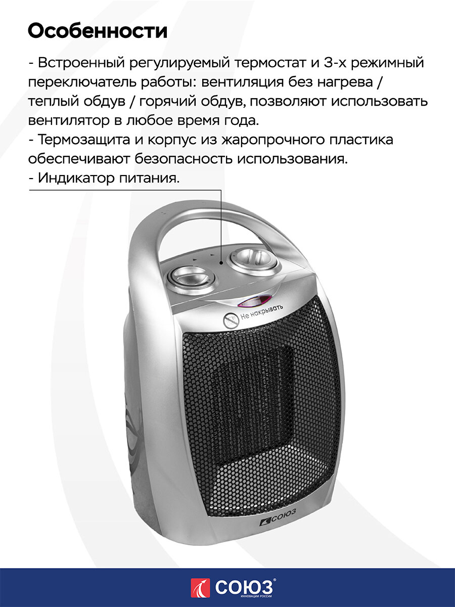 Тепловентилятор керамический СОЮЗ ТВС-2000К интересное: