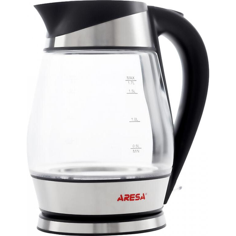 Чайник электрический ARESA AR-3441, 1,7 л., стеклянная колба, серебристый, черный