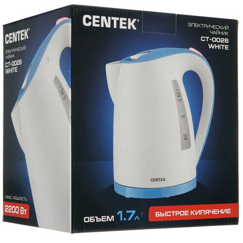 Centek Чайник электрический CT-0026, 2200 Вт, 1,7 л, синий