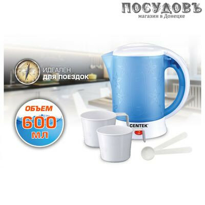 Чайник электрический CENTEK CT-0054 дорожный 0,6л, 600 Вт, синий