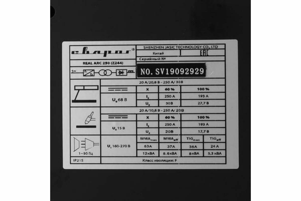 Сварочный аппарат инверторного типа Сварог REAL ARC 250 (Z244), TIG, MMA (00000095490)