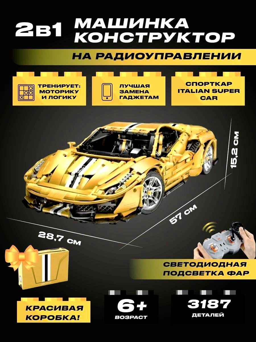 Купить Радиоуправляемый конструктор CaDa MASTER Споркар italian Super Car желтый 1/18 3187 деталей C61057W 14+