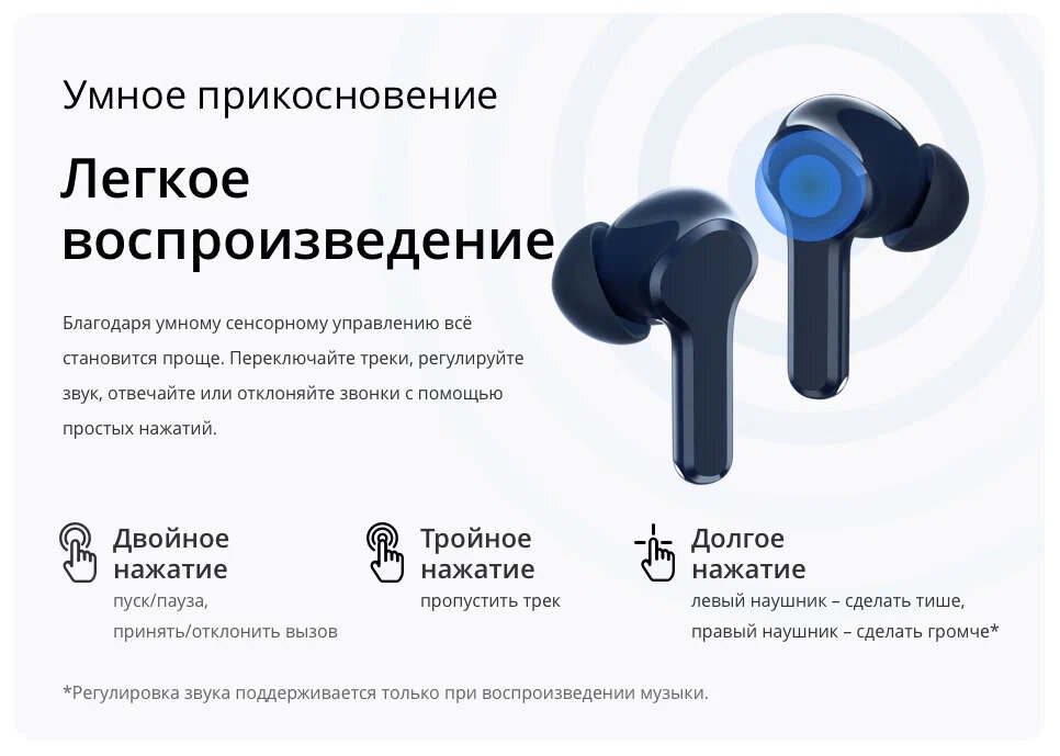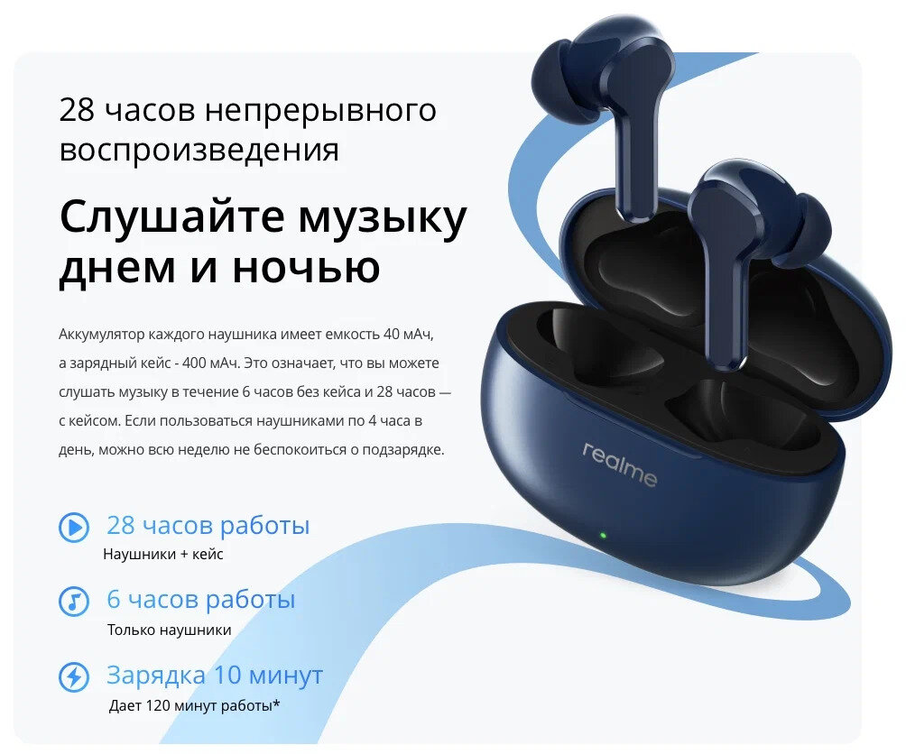 Беспроводные наушники realme Buds T100 синий, ANC, шумоподавление