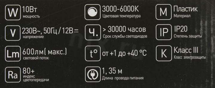 | Дополнительная информация | цветовая температура 3000-6000 К |