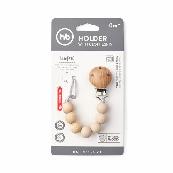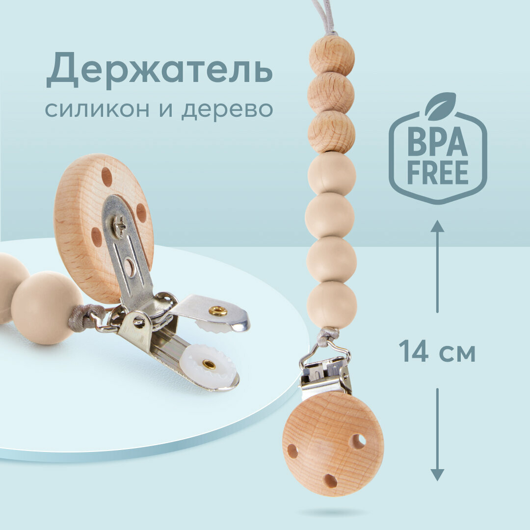 Сохранить11027, Держатель для пустышки Happy Baby держатель для соски, на прищепке, силиконовые бусины, бежевый интересное:
