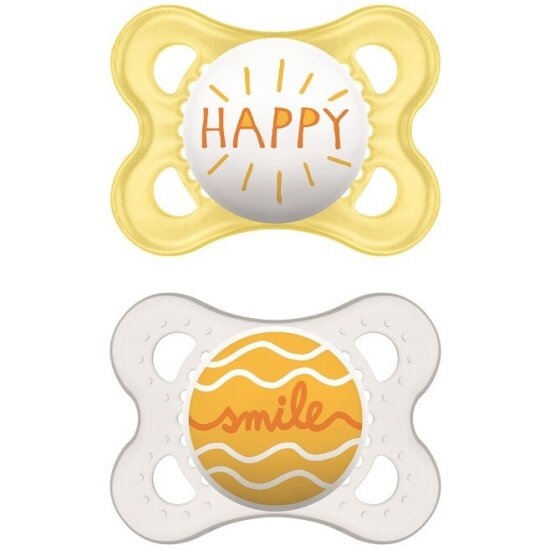 Купить Соска-пустышка из латекса MAM Original Happy Thoughts 2 шт. и контейнер для стерилизации, бежевый и серый, 0-6 мес