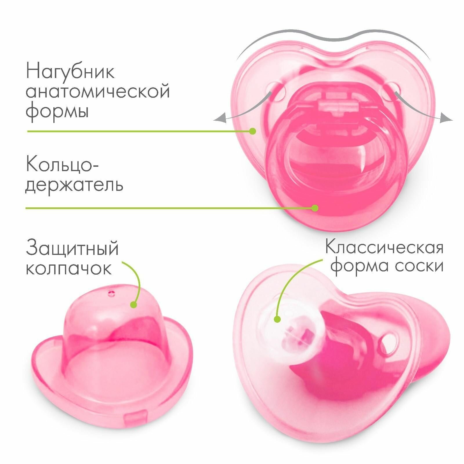 Соска-пустышка классическая, силикон, от 0 мес., с колпачком, цвет розовый интересное: