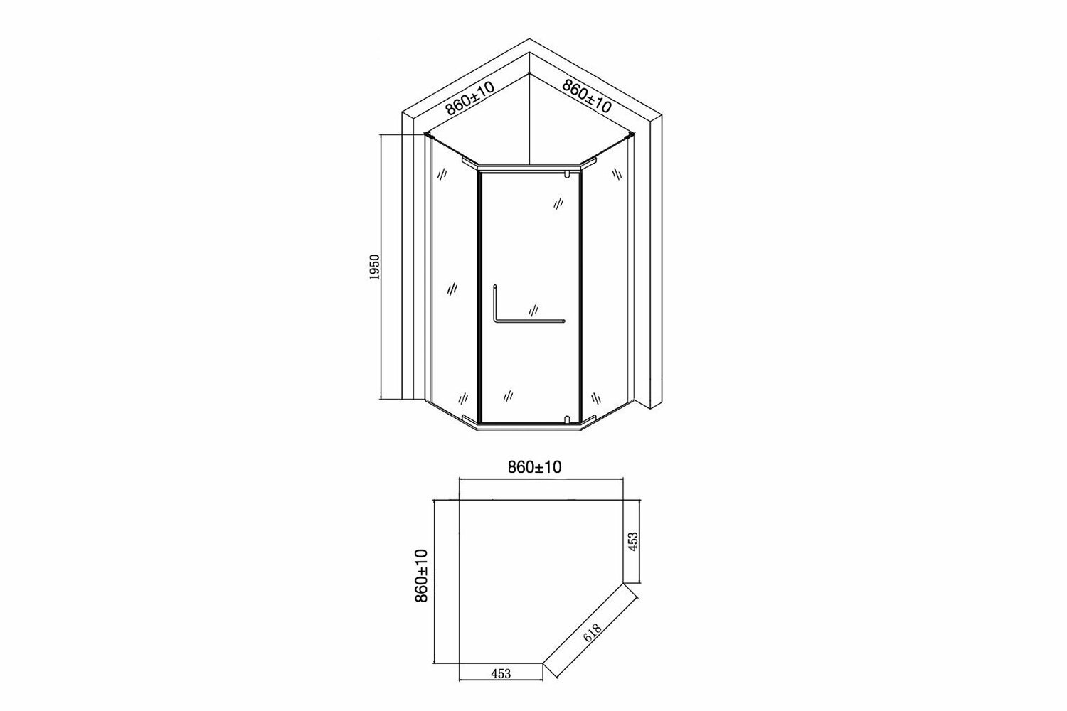 Душевой уголок Agger пятиугольный без поддона 90х90х195 A03-090TCRxG