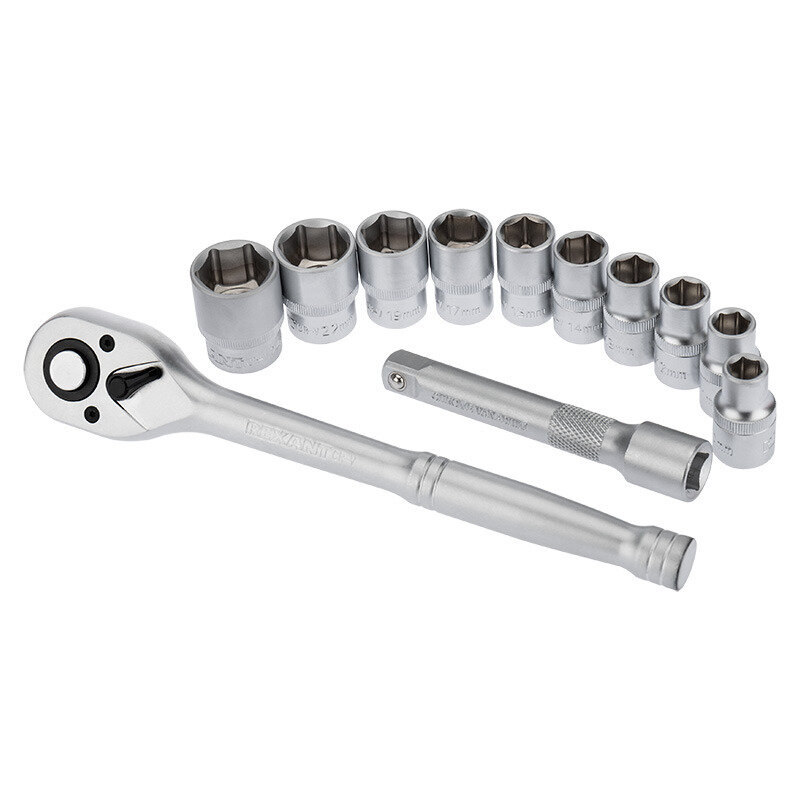 Набор торцевых головок 12, головки 10-24 мм, с трещоточным ключом, 12 предметов, REXANT 128301 (1 упак)