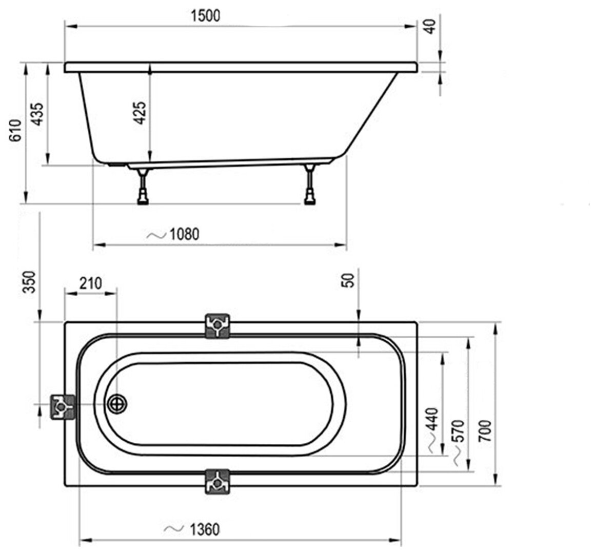 Ванна акриловая Ravak Chrome 150 C721000000 без гидромассажа