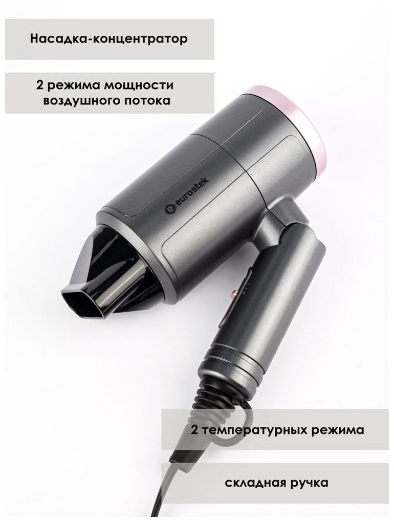 Фен EUROSTEK EHD-RC09G электрический серый интересное:
