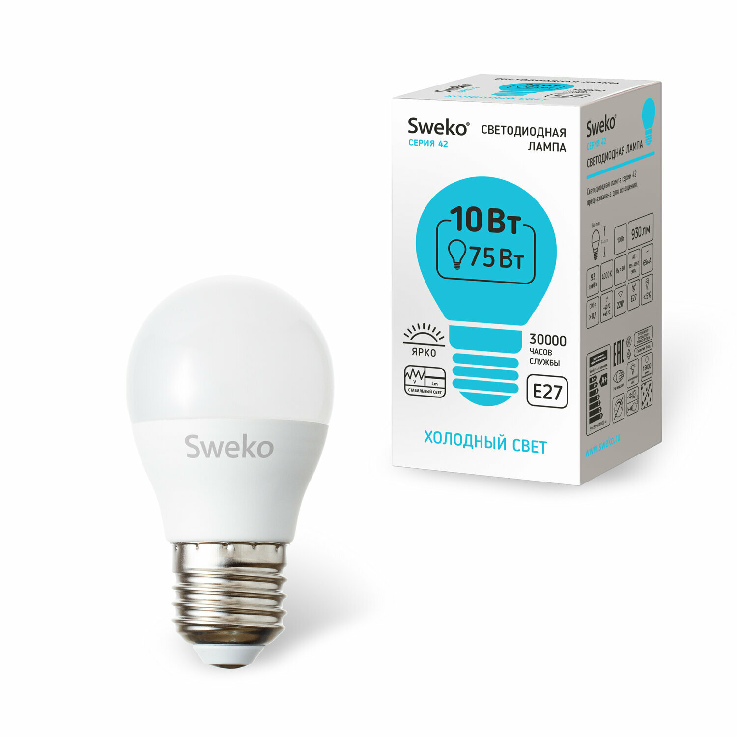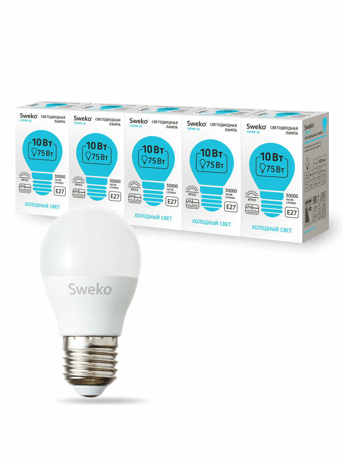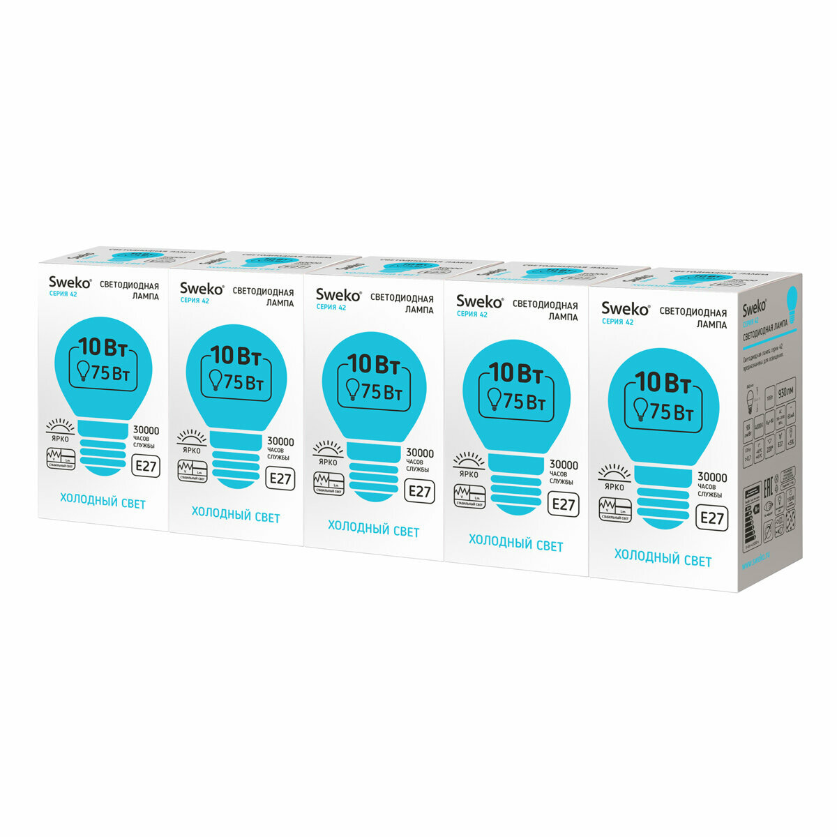 Комплект из 5 штук. Sweko Светодиодная лампа Серия 42 шар матов G45 E27 10W(930lm) 4000K 84х45 интересное: